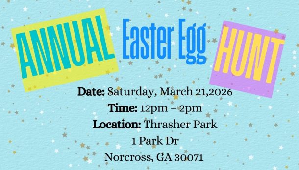 Come to Thrasher Park on Saturday, March 21, 2026 for an Easter Egg Hunt from noon to 2 p.m.