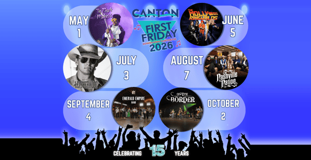 Head to downtown Canton on first Fridays in 2026, for a family-friendly block party that is completely FREE to attend!