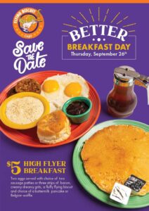 On Sept. 26th, you can get the classic High Flyer Breakfast for just $5, all day long.
