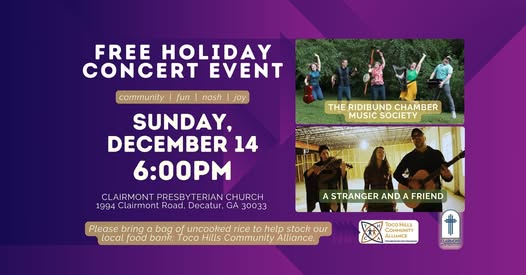 There will be a FREE holiday concert at Clairmont Presbyterian Church on Sunday, December 14, 2025 at 6 p.m.