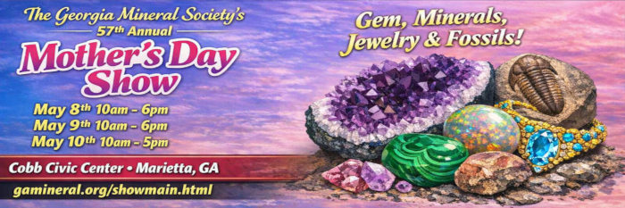 The Georgia Mineral Society will host its annual Gem, Mineral and Jewelry Show on Mother’s Day weekend — that’s May 8 to 10, 2026.