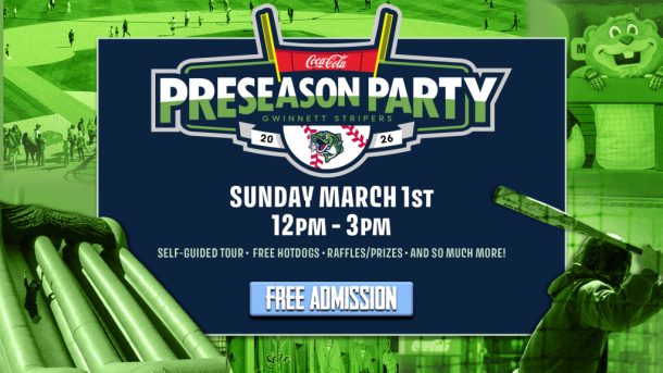 The Gwinnett Stripers invite you to their Pre-Season Party at Coolray Field, on Sunday, March 1, 2026.