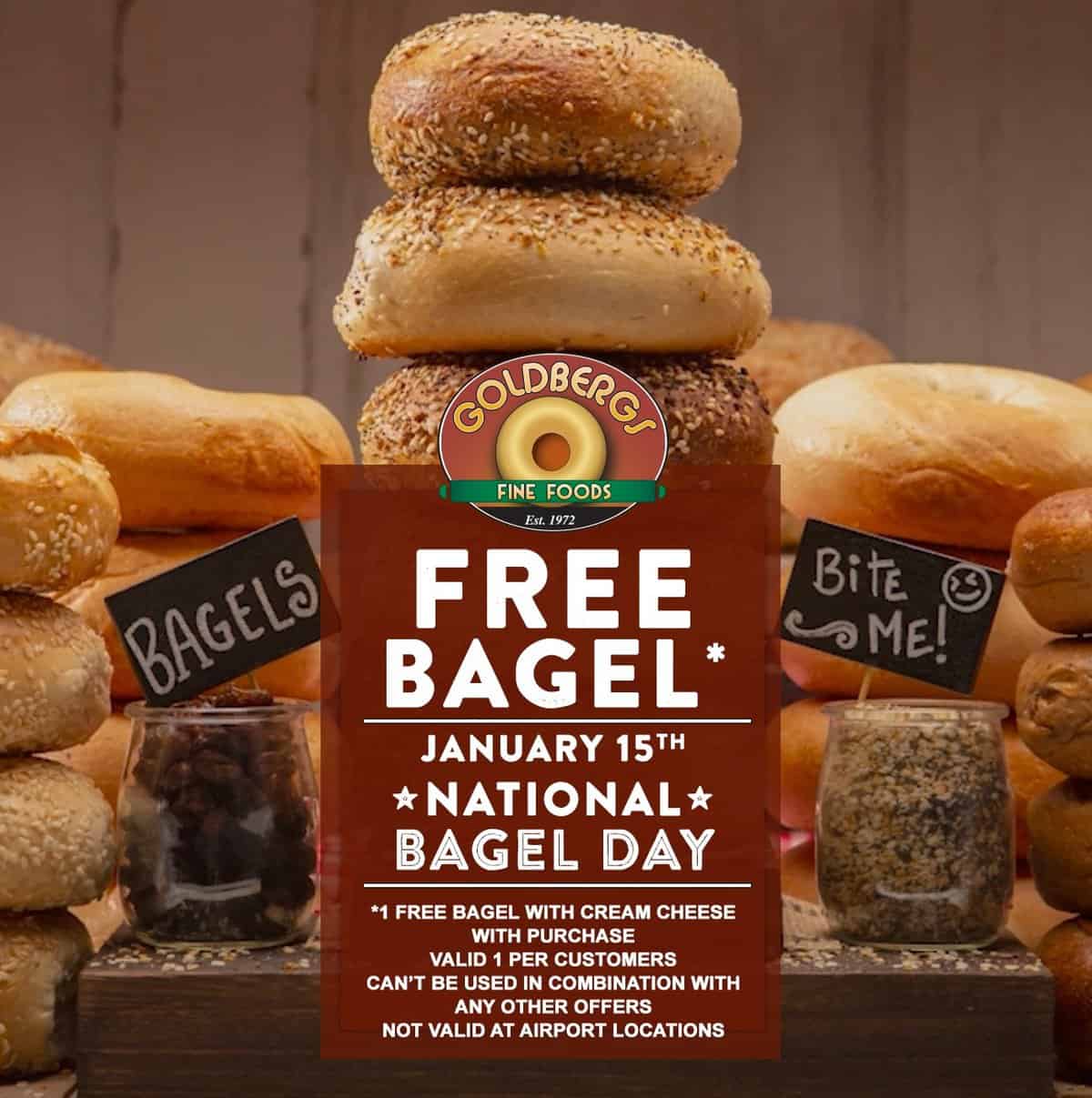 Goldberg’s is offering a FREE bagel with cream cheese on Monday, January 15, 2024, with any other purchase. The offer is good at all locations except the airport.