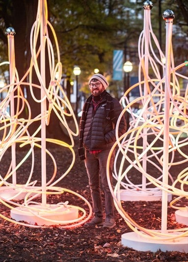 All month long, you can visit Peachtree Corners Town Center at dusk to view a new public art and light installation by Atlanta-based artist Eddie Farr.