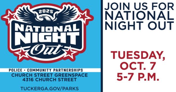 The city of Tucker will hold its National Night Out event on Tuesday, Oct. 7, 2025 from 5 to 7 p.m.