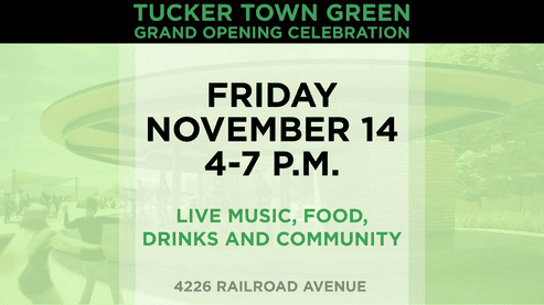 On Friday, November 14, 2025, the public is invited to attend the Grand Opening Celebration of the brand new Tucker Town Green.